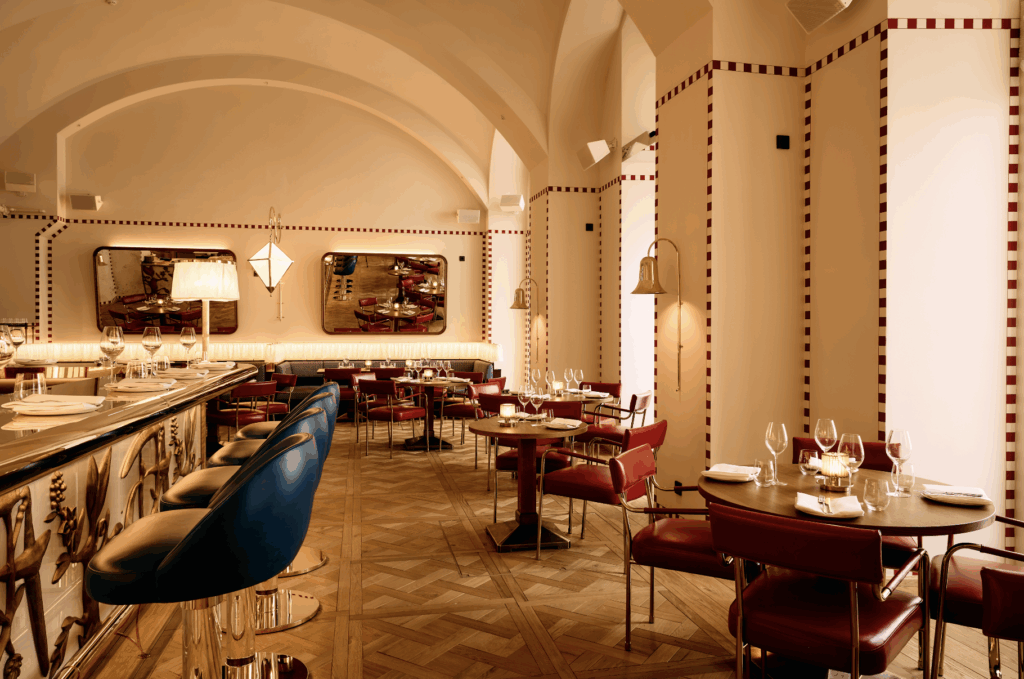 Seit Anfang März ist der Standort im alten Postgebäude um eine kulinarische Top-Adresse reicher. Die neue Brasserie Rascal zelebriert auf zeitgemäße Art die österreichische und zentraleuropäische Küche. Klassiker wie Caesar Salad oder Beef Tatar werden am Tisch angerichtet und neu inszeniert. Am Wochenende rücken Sharing Plates in den Mittelpunkt: Austern, perfekt gereifte Tomahawk-Steaks und saisonale Spezialitäten laden zum gemeinsamen Genuss ein. Über dem Gastraum schwebt eine Lichtinstallation des Künstlers SHA., die sich im Rhythmus der Jahreszeiten verändert und dem Raum eine lebendige, beinahe poetische Dimension verleiht. Tiefrote und blaue Ledertöne, polierte Holztische und kunstvolle Stoffe, die an traditionelle Wiener Fensterdekorationen erinnern, unterstreichen die Verbindung zur Kaffeehauskultur und verleihen dem Raum eine unverwechselbare Identität.